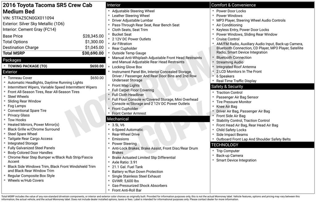 Meet the dependable and versatile 2016 Toyota Tacoma SR5built to handle your daily drive, weekend projects, and everything in between.
