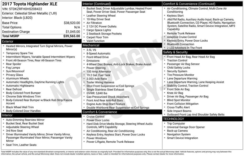 Refined, versatile, and built with Toyotas reputation for long-term reliability, this Pre-Owned 2017 Toyota Highlander XLE delivers a smooth ride, upscale comfort, and practical space for everyday driving.