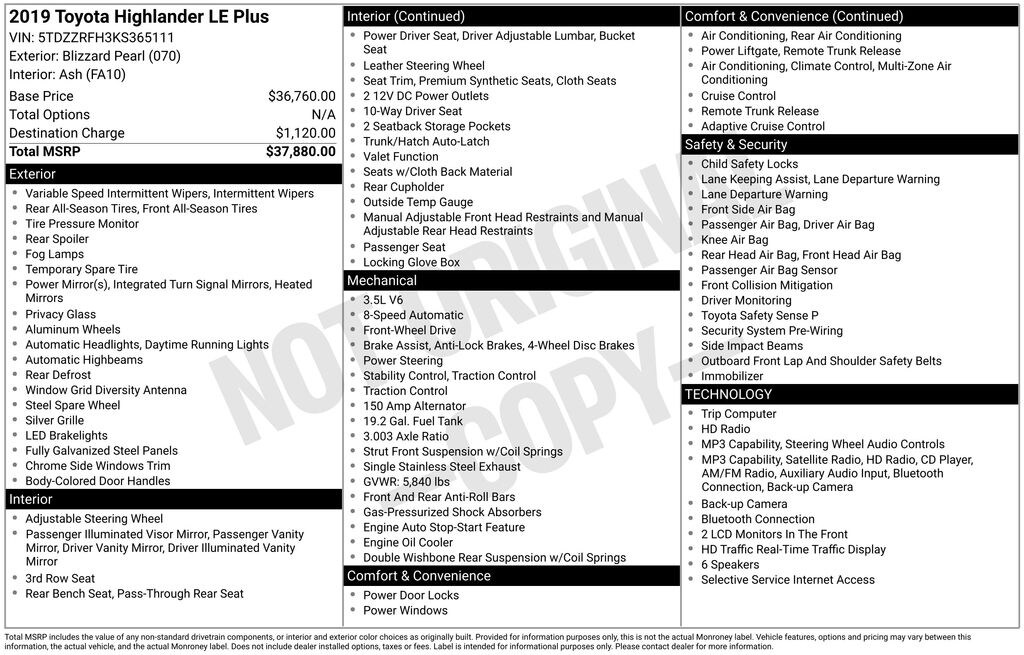 2019 Toyota Highlander LE Plus